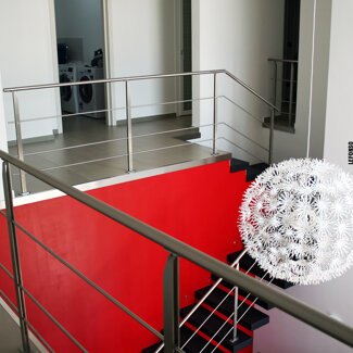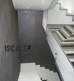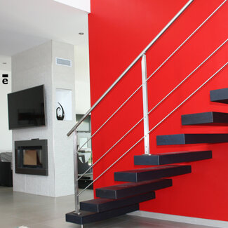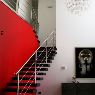 scala gradini in rovere tinto grigio con ringhiera in acciaio inox satinato