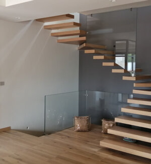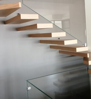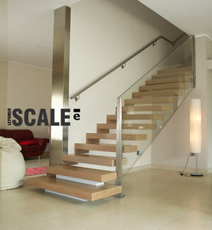 scala a sbalzo in legno di rovere parapetto in cristallo extrachiaro temperato di sicurezza